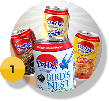 Iya. produk DayDay kemasan kaleng 300 ml varian DayDay Sarang Burung, DayDay Soya Bean, DayDay Krisantemum, DayDay Kundur & DayDay CinCau yang bertanda khusus.